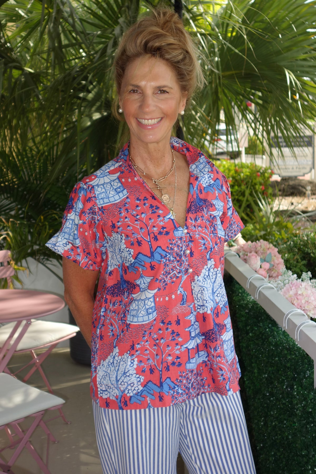 A timeless essential, the Kristina Top is designed with a flattering V-neckline accented by three delicate pearl buttons and short sleeves for a light, easy fit. Effortlessly versatile, it’s a go-to piece for every wardrobe.