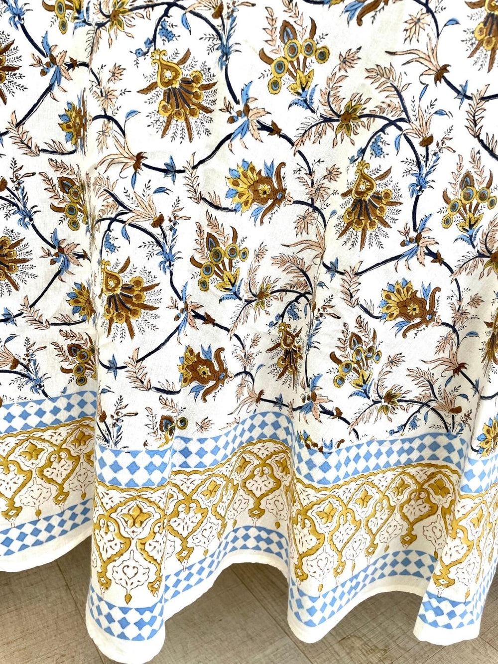 Our handcrafted natural handmade Indian table linen is perfect to add some light and breezy feeling to your occasion. Paired beautifully with a turquoise accent. Hand cut & block printed for the lovely hostess. Our table décor is made by artisans in Jaipur, India.